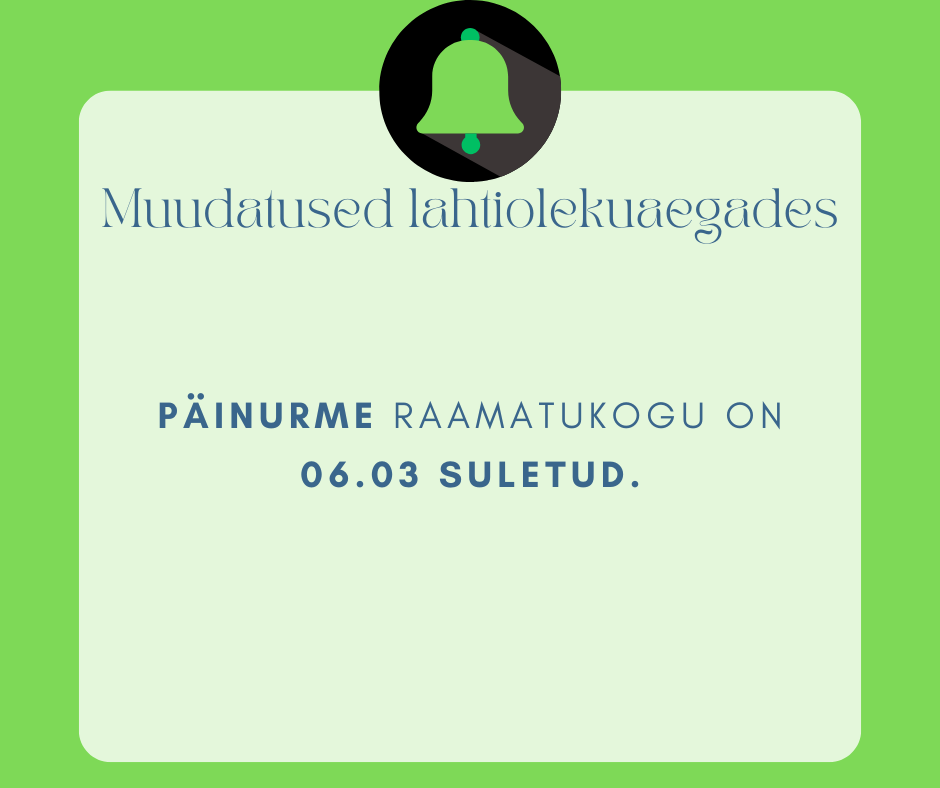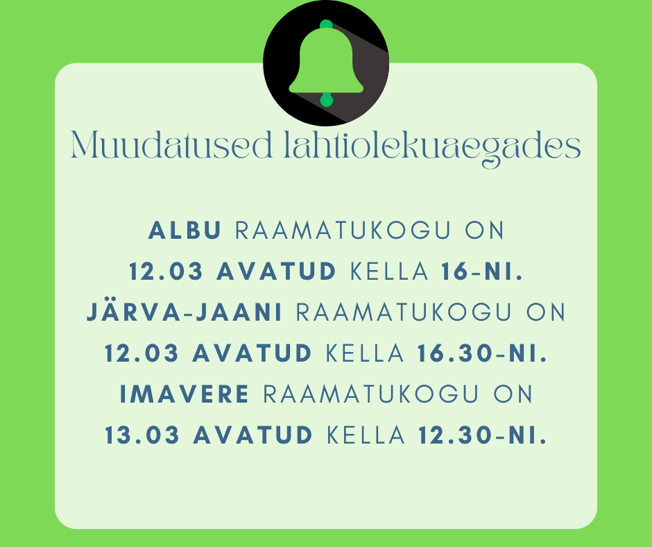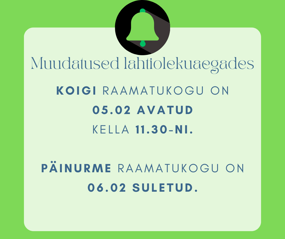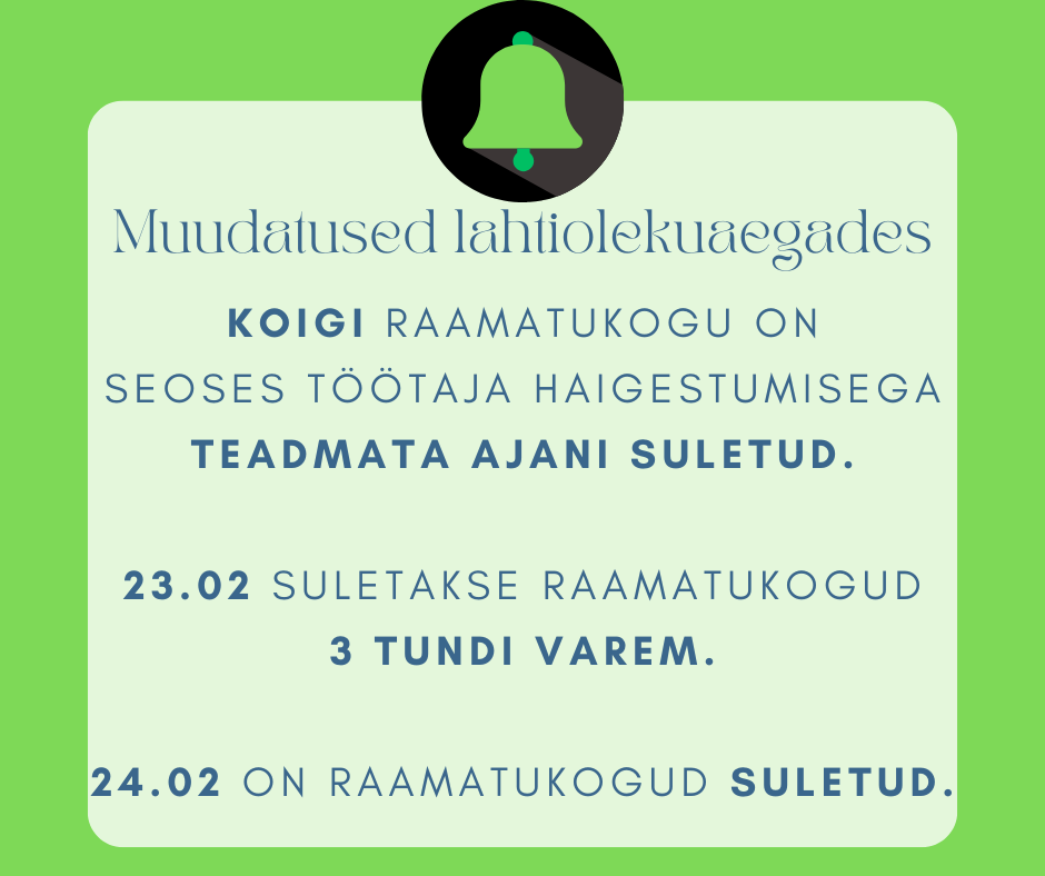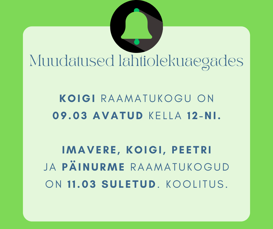 Siit leiate kõige täpsema info raamatukogude lahtiolekuaegade kohta. Anname